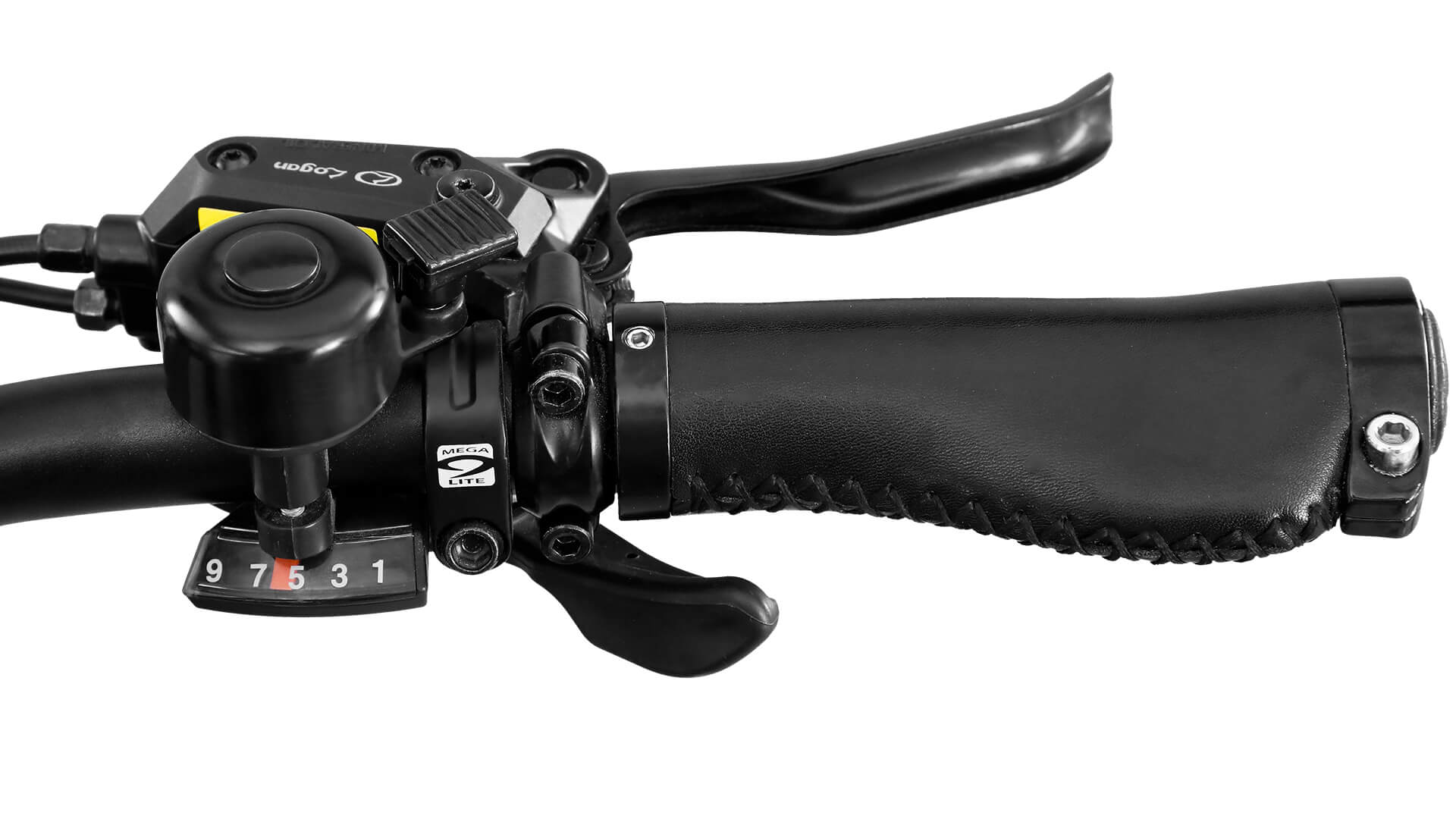 - Aluminum alloy comfort grip levers with motor cutoff switch.