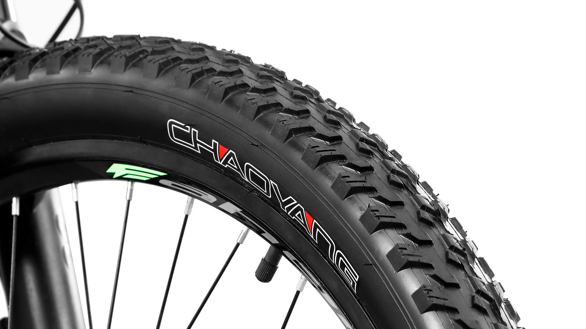 - 27.5" * 2.8" CHAOYANG tires; tire pressure marked on sidewall.